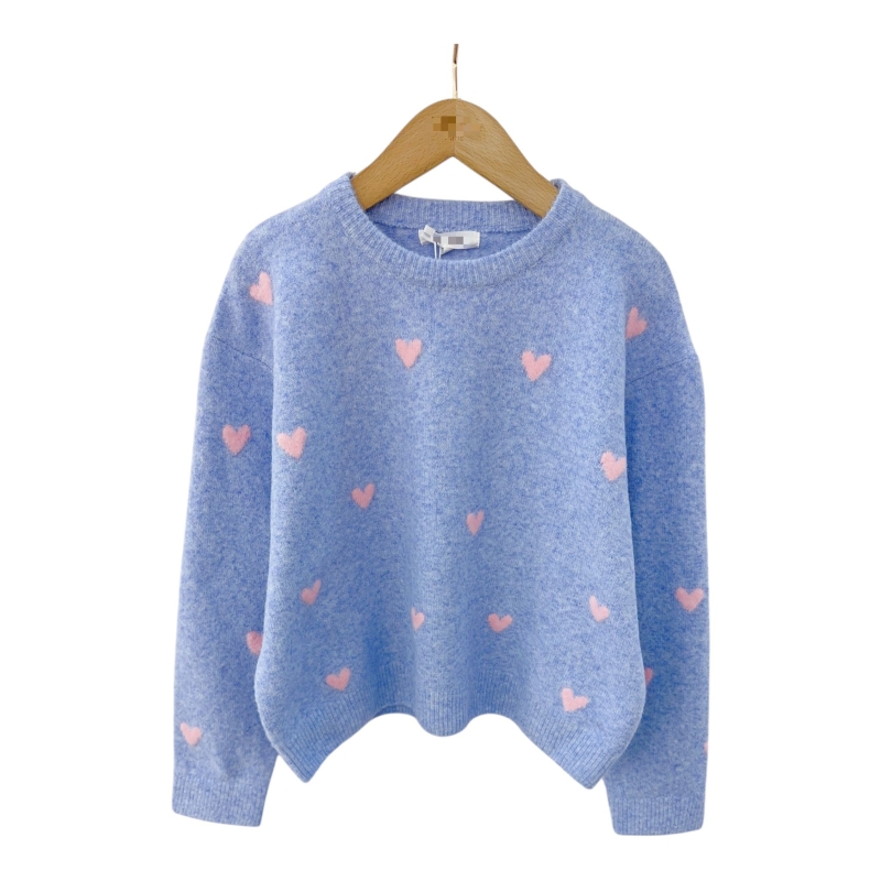 Gebreide blauwe trui met hartjes, M&M Boutique