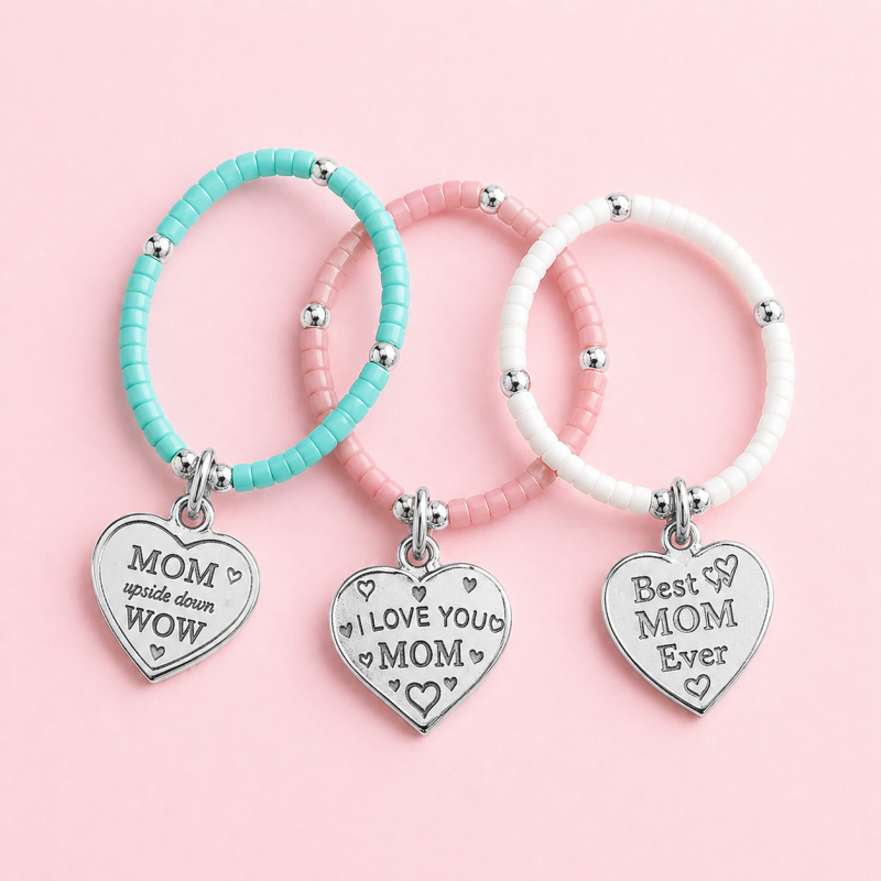 Elke ring is uniek en wordt met zorg samengesteld. Je kunt jouw favoriete kleur eenvoudig selecteren via de keuzelijst. De bedel is altijd een MOM variant, maar het exacte design kan iets verschillen.
