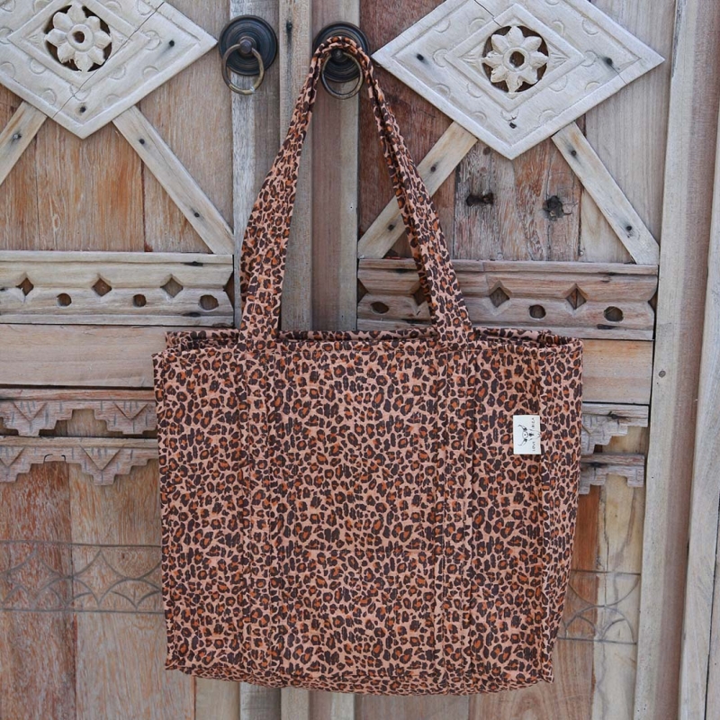 Deze blockprint schoudertas met luipaard print is gemaakt van organisch katoen en heeft aan de binnenkant ook nog een vakje! Deze tassen zijn met de hand bedrukt door middel van traditioneel Indiaas block printing methode met een verf van natuurlijke pigmenten.
